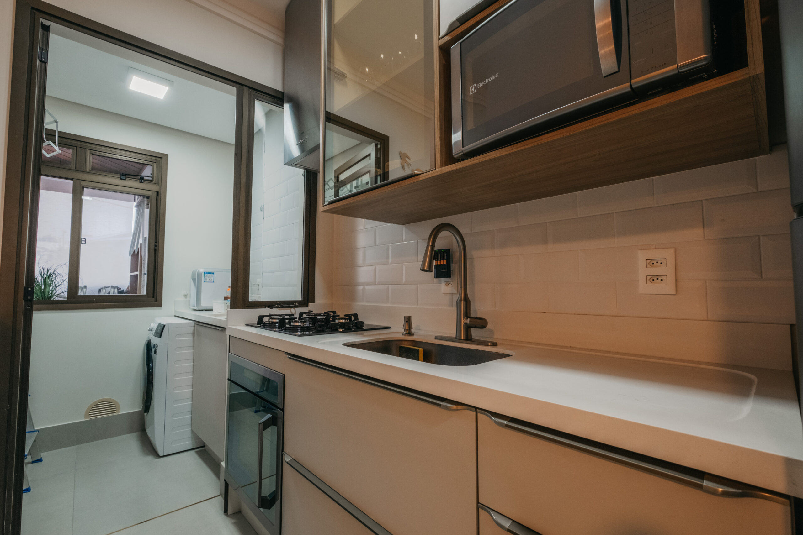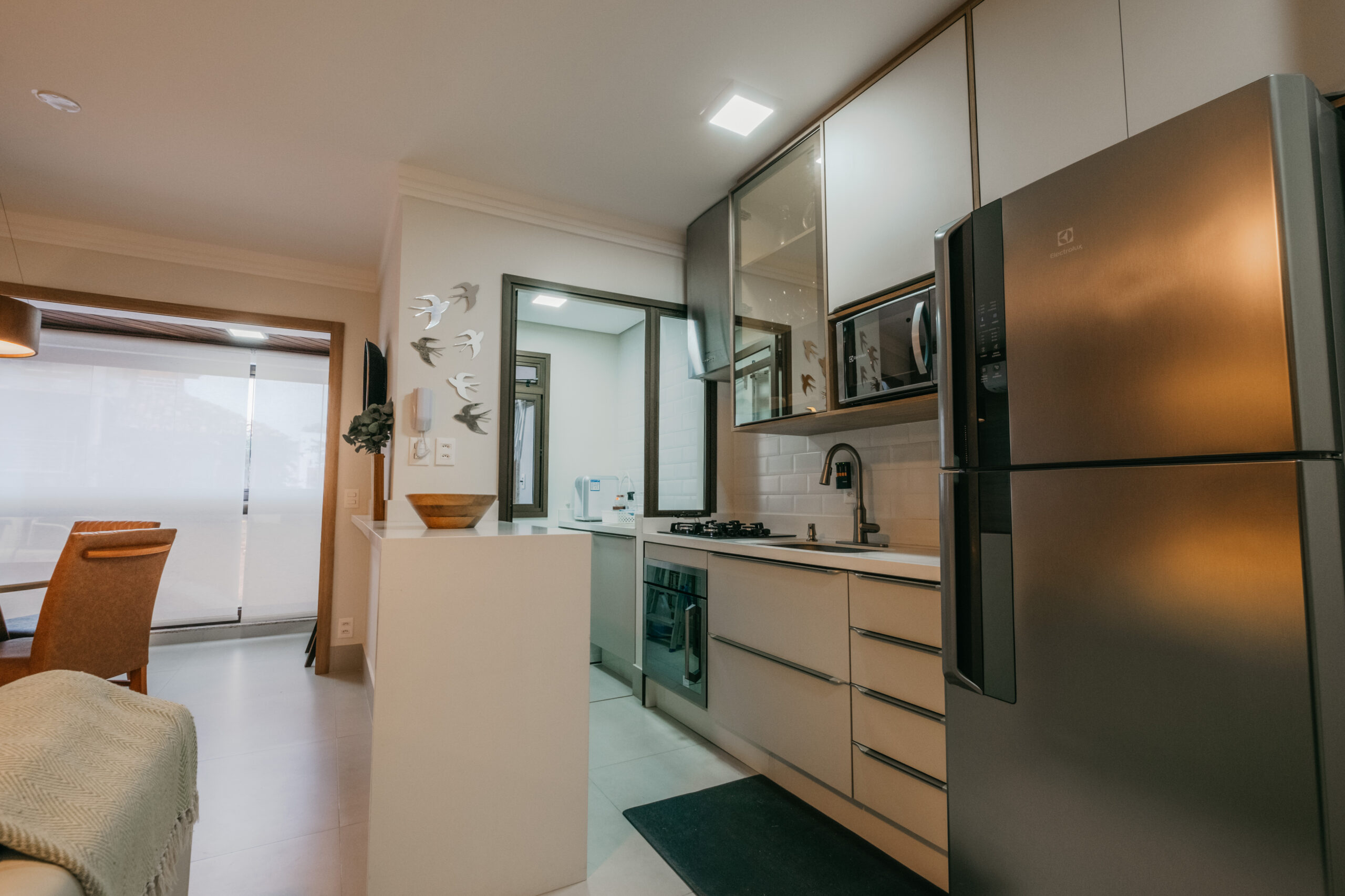Lindo apartamento mobiliado, 2 dormitórios sendo 1 suíte, banheiro social, sala com cozinha integrada e móveis planejados, área de serviço separada, sacada com churrasqueira, vista livre. 1 vaga de garagem e hobby box.