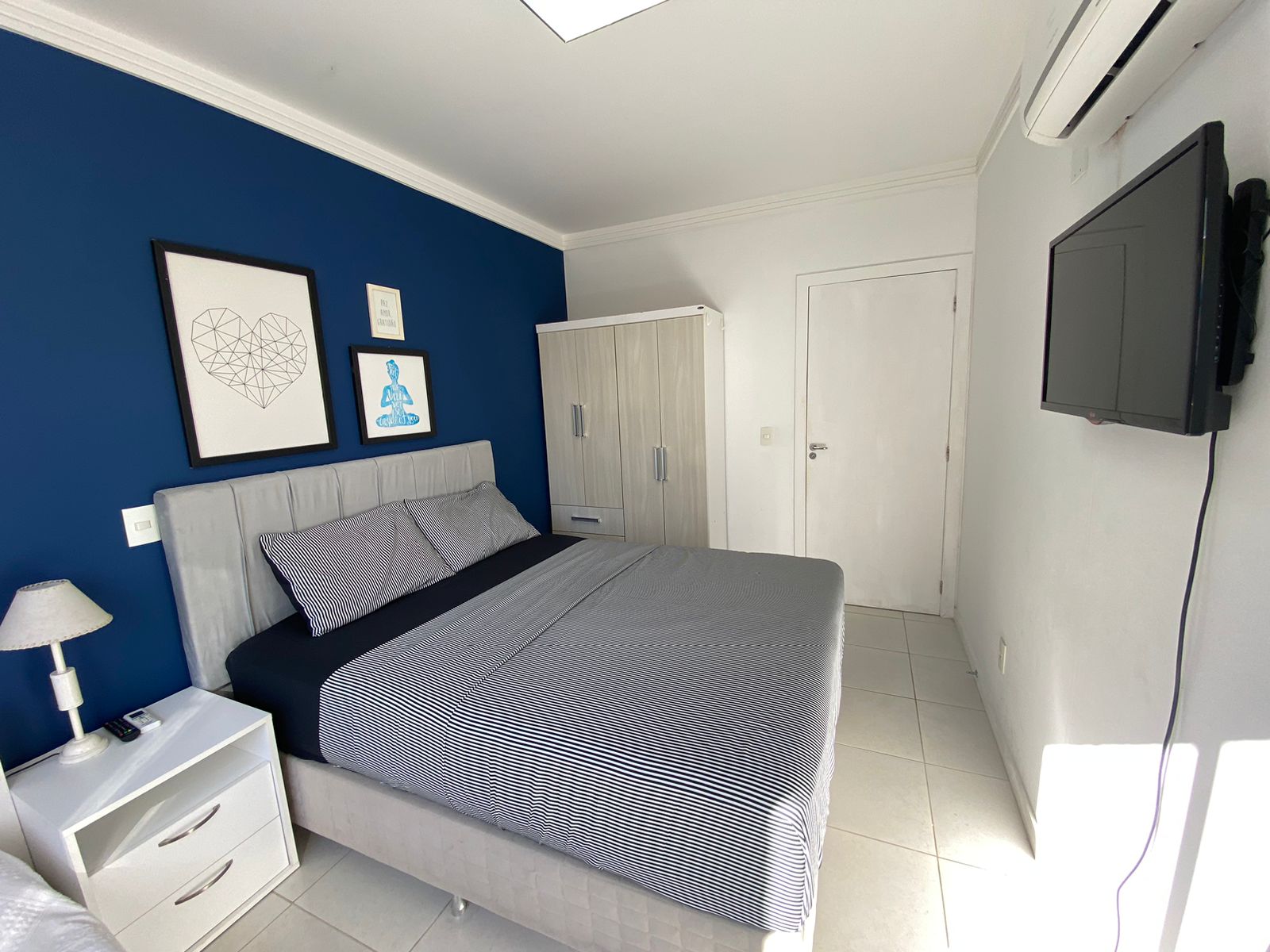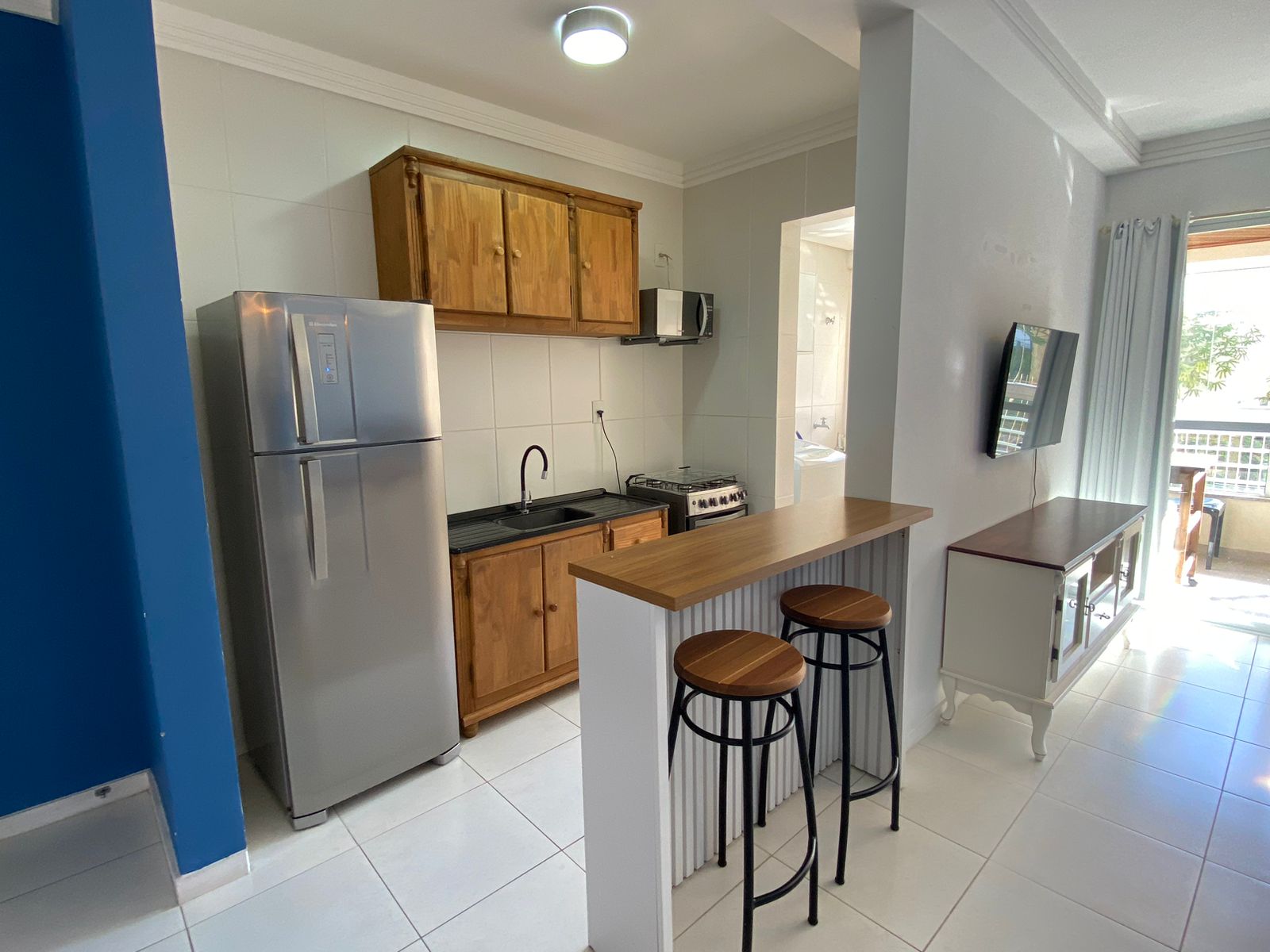 Apartamento 1 dormitório mobiliado , 51m2, sacada com churrasqueira, garagem .