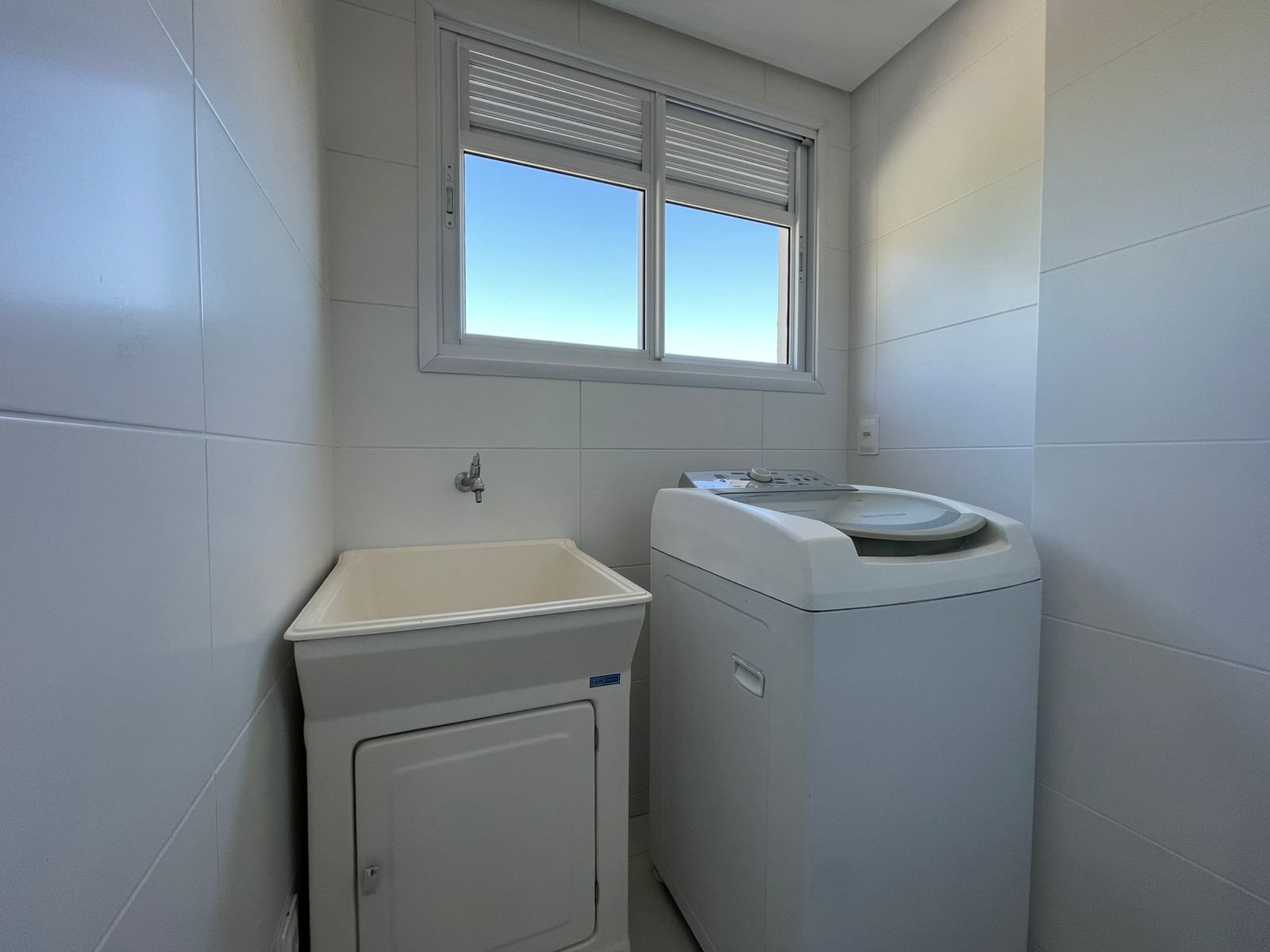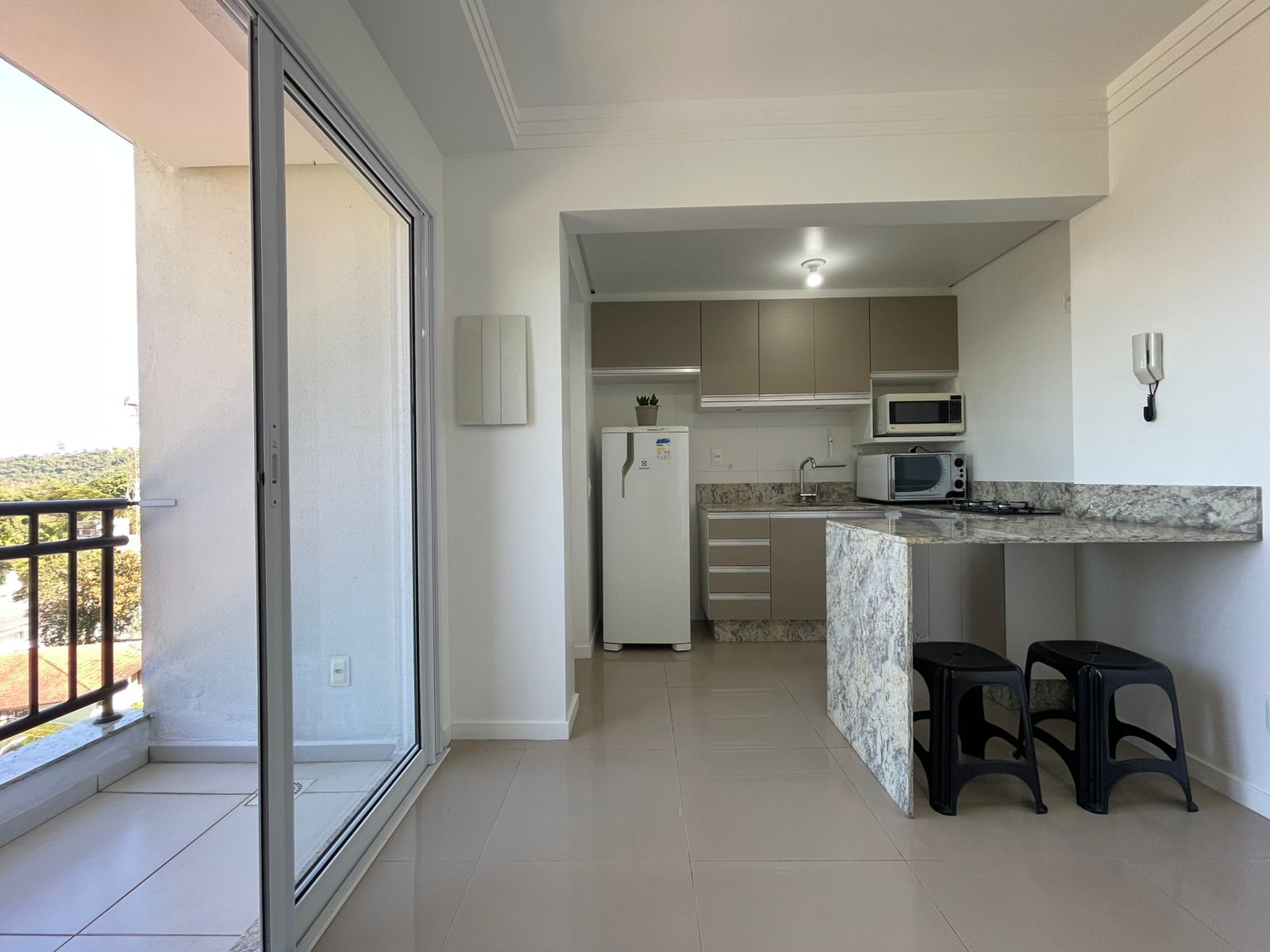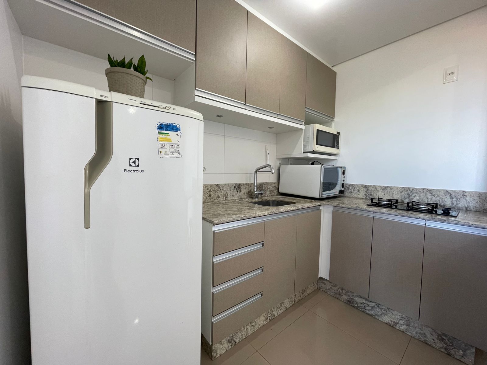 A planta é moderna e funcional, com sala integrada à cozinha, área de serviço, sacada com churrasqueira, lavabo e 1 suíte.