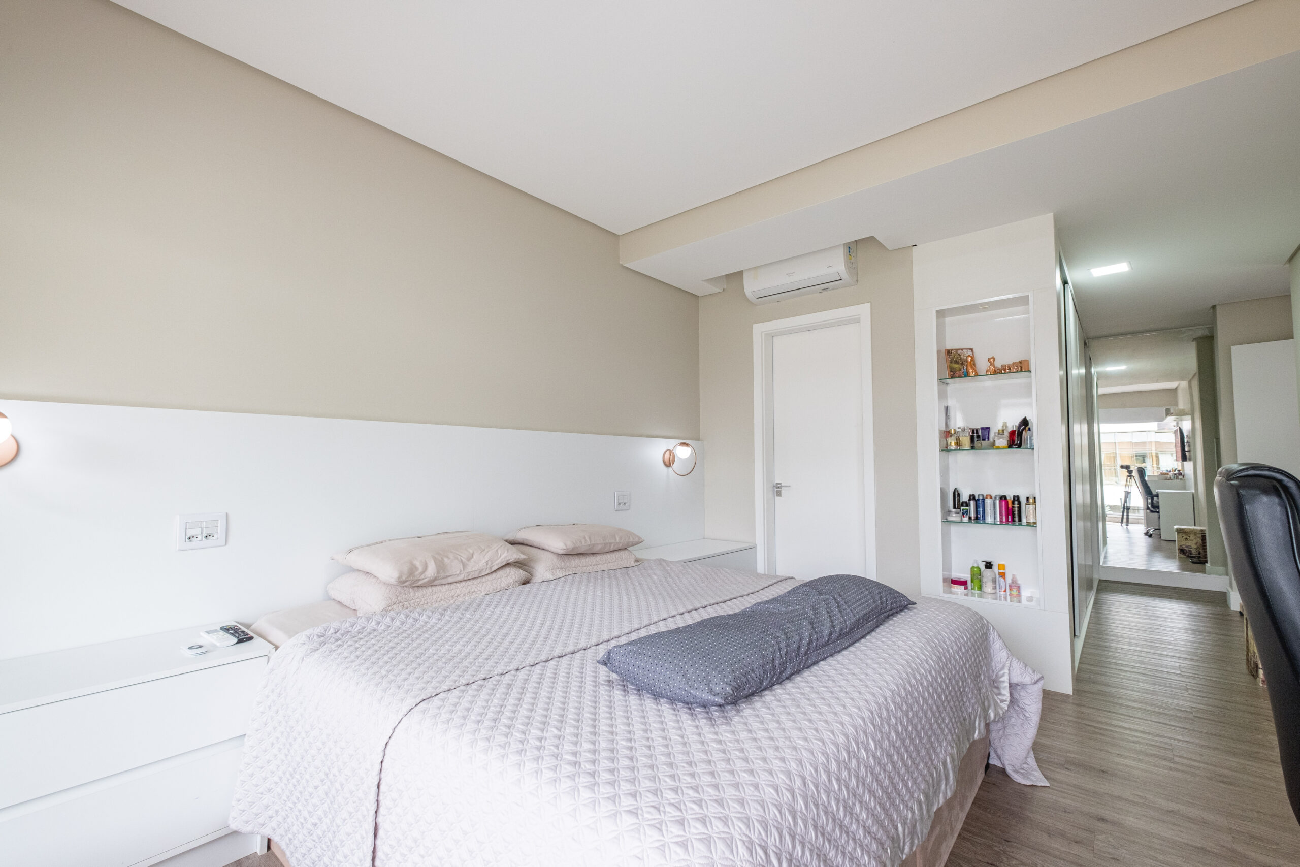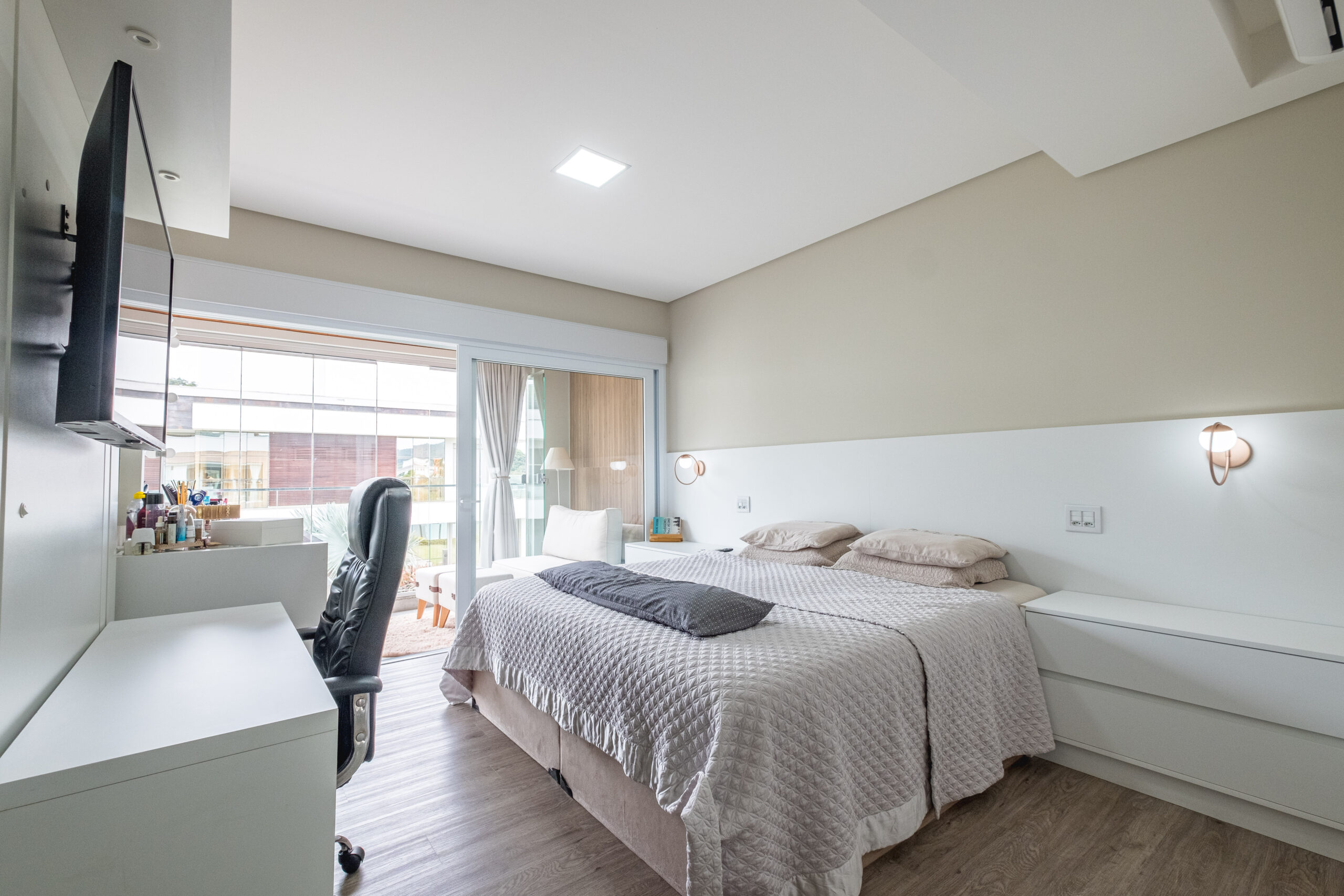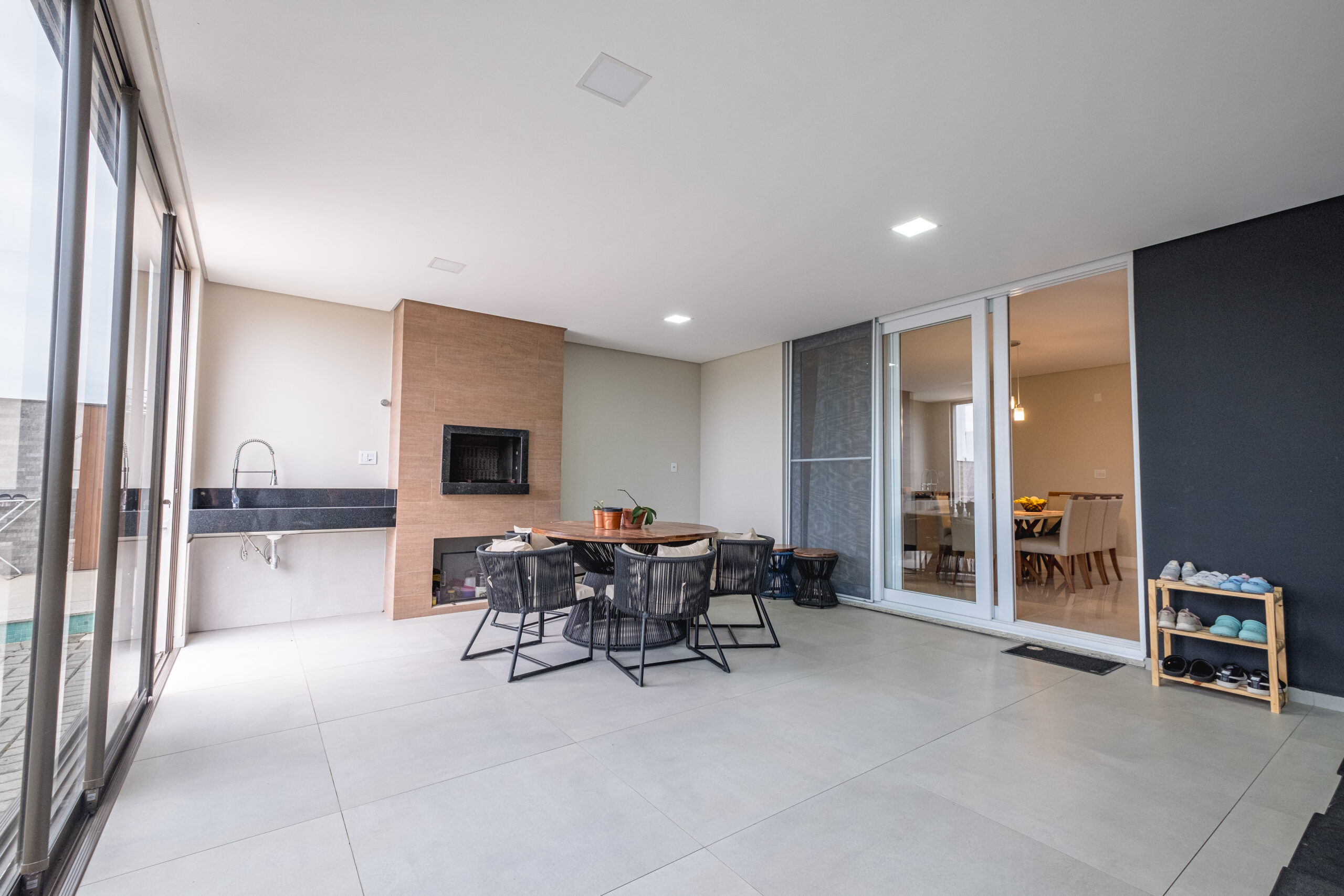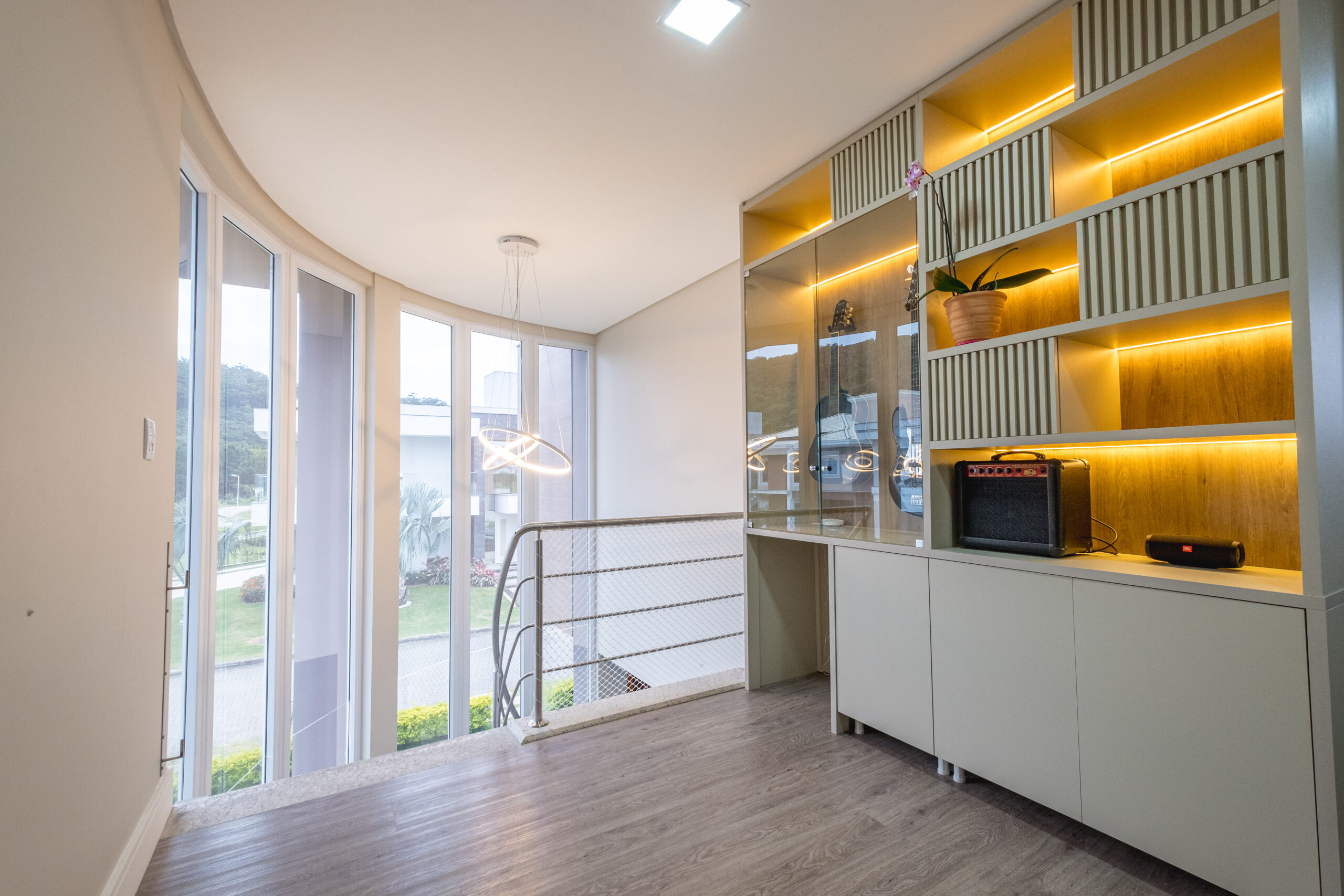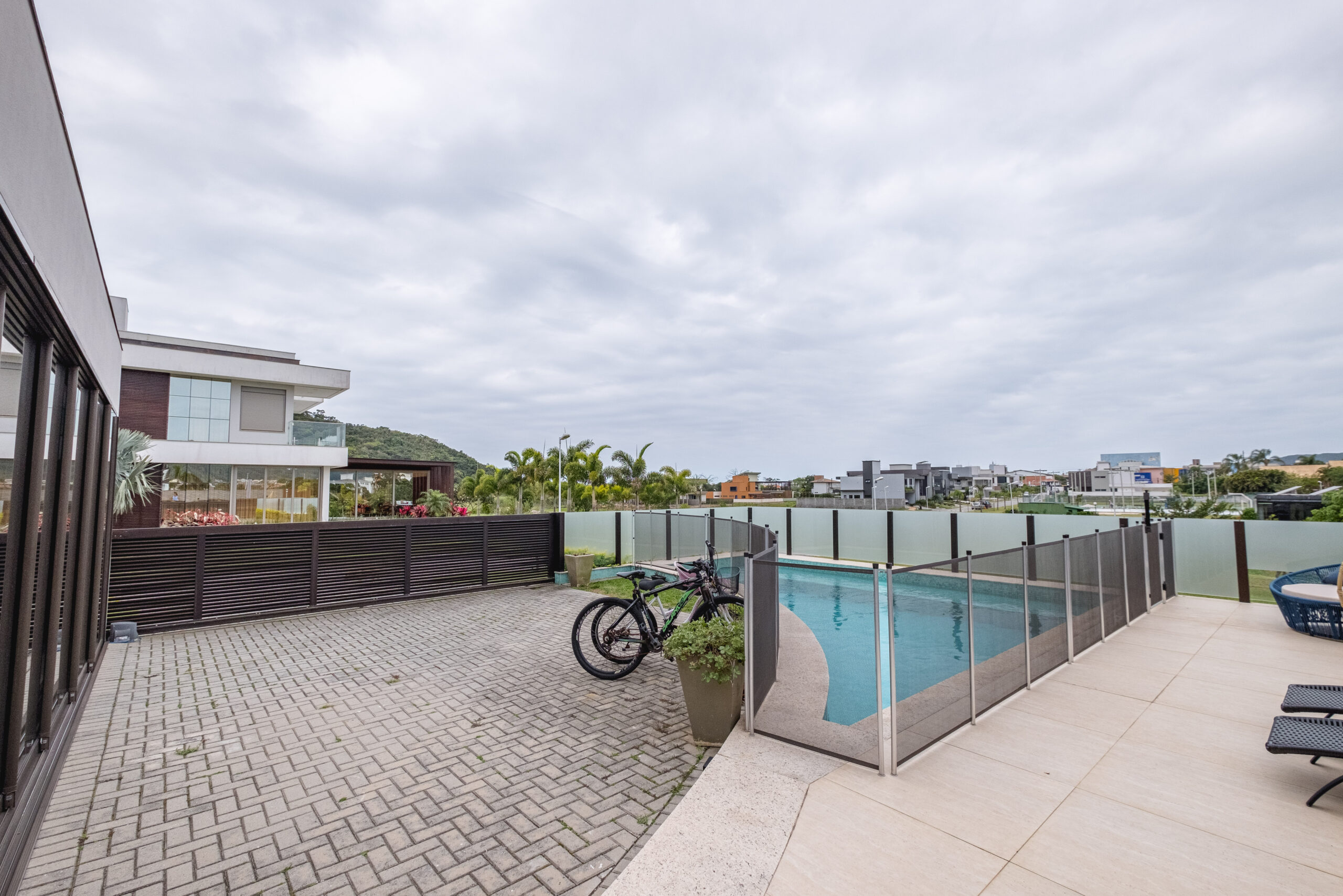 Casa residencial em condomínio fechado, possui 4 suítes, sala de jantar e TV, ar condicionado, sacada, churrasqueira, armários planejados, copa cozinha, cozinha americana, escritório, área de serviço, espera para split, estar íntimo, living, mobiliado, piscina, quintal, teto rebaixado, vista panorâmica, 4 banheiros e 2 vagas de garagem.