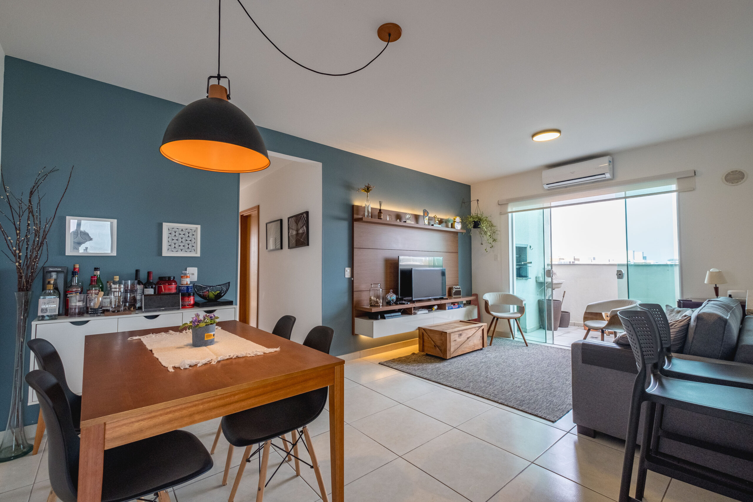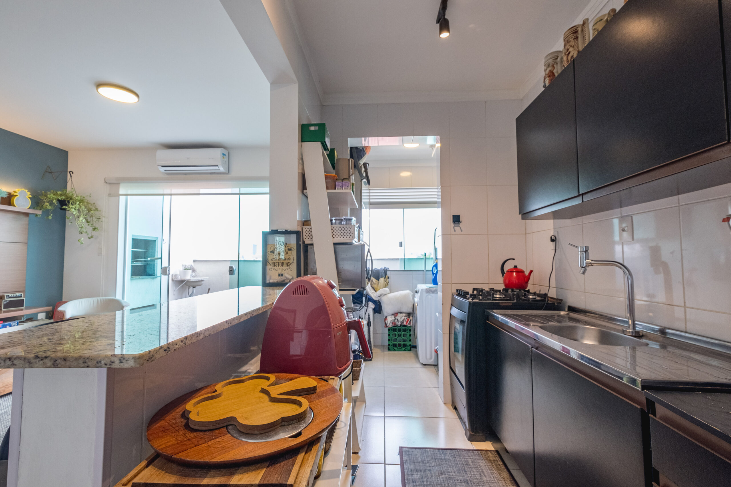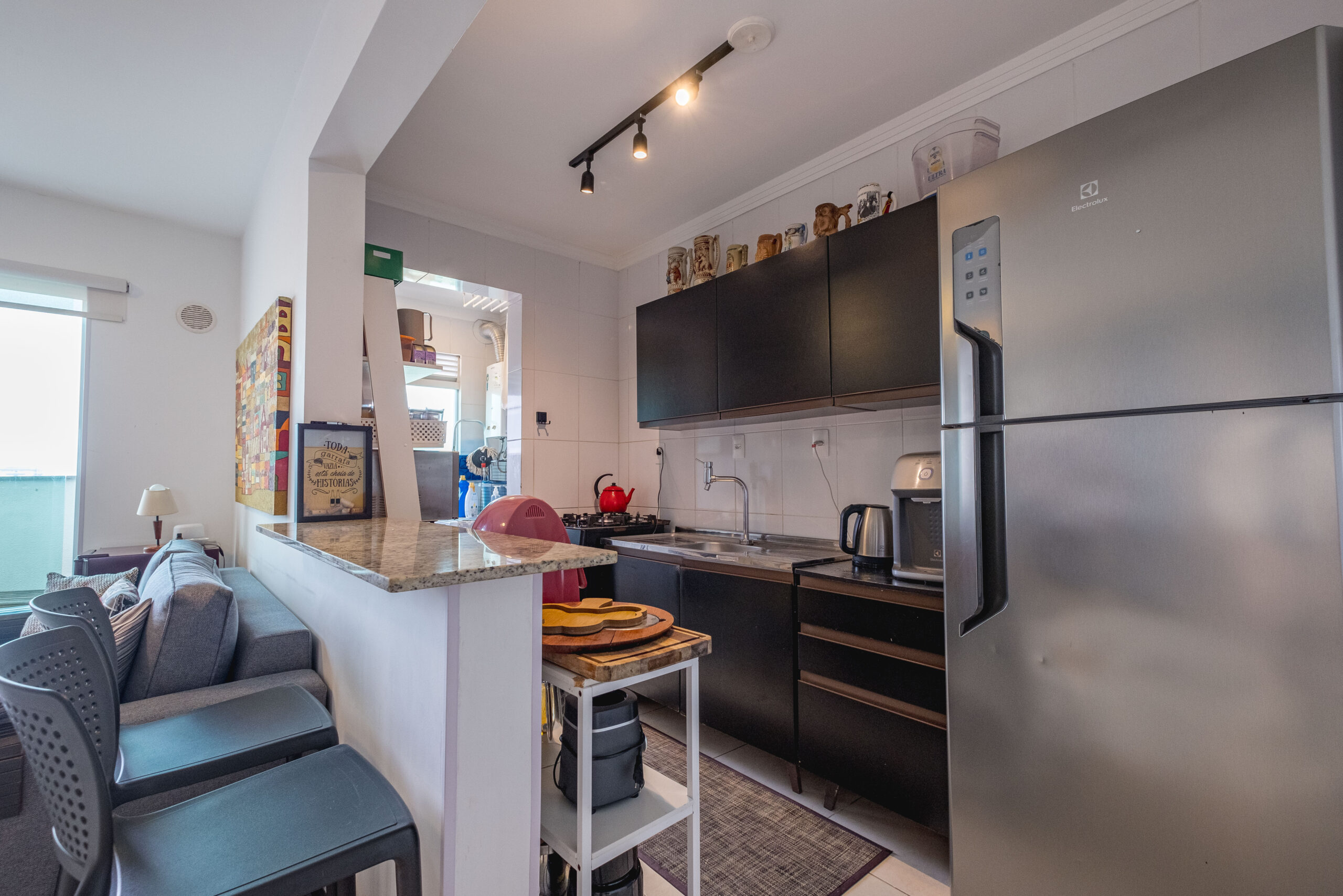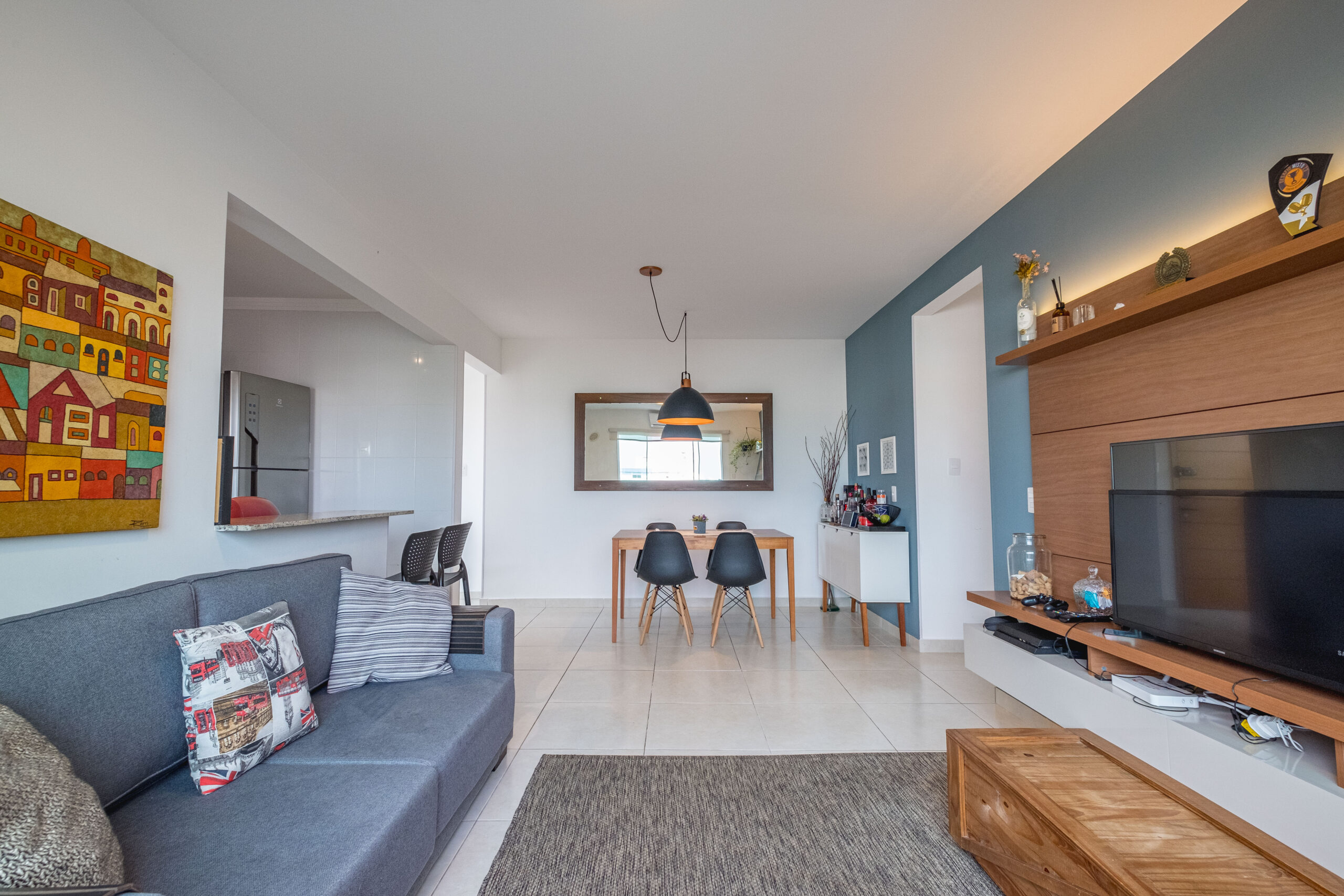 Imóvel com 3 dormitórios, sendo 1 suíte, sala e cozinha integradas, sacada com churrasqueira, banheiro social, área de serviço e amplo terraço, mobiliada.